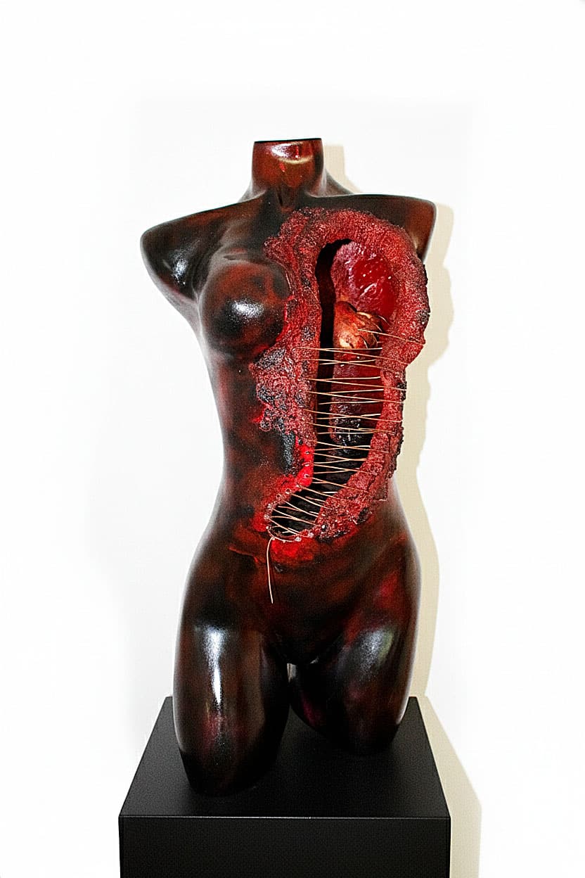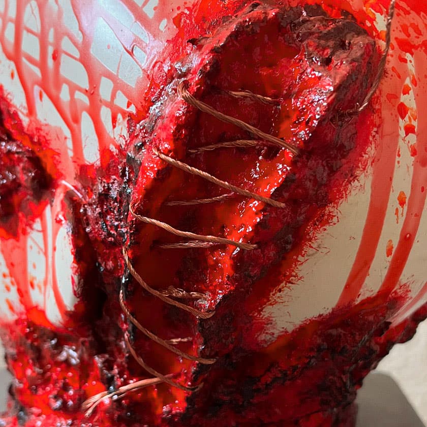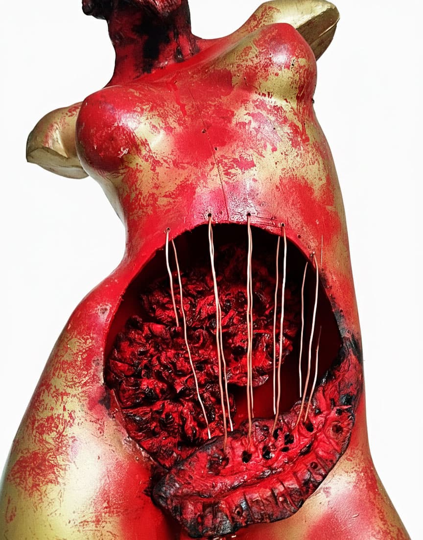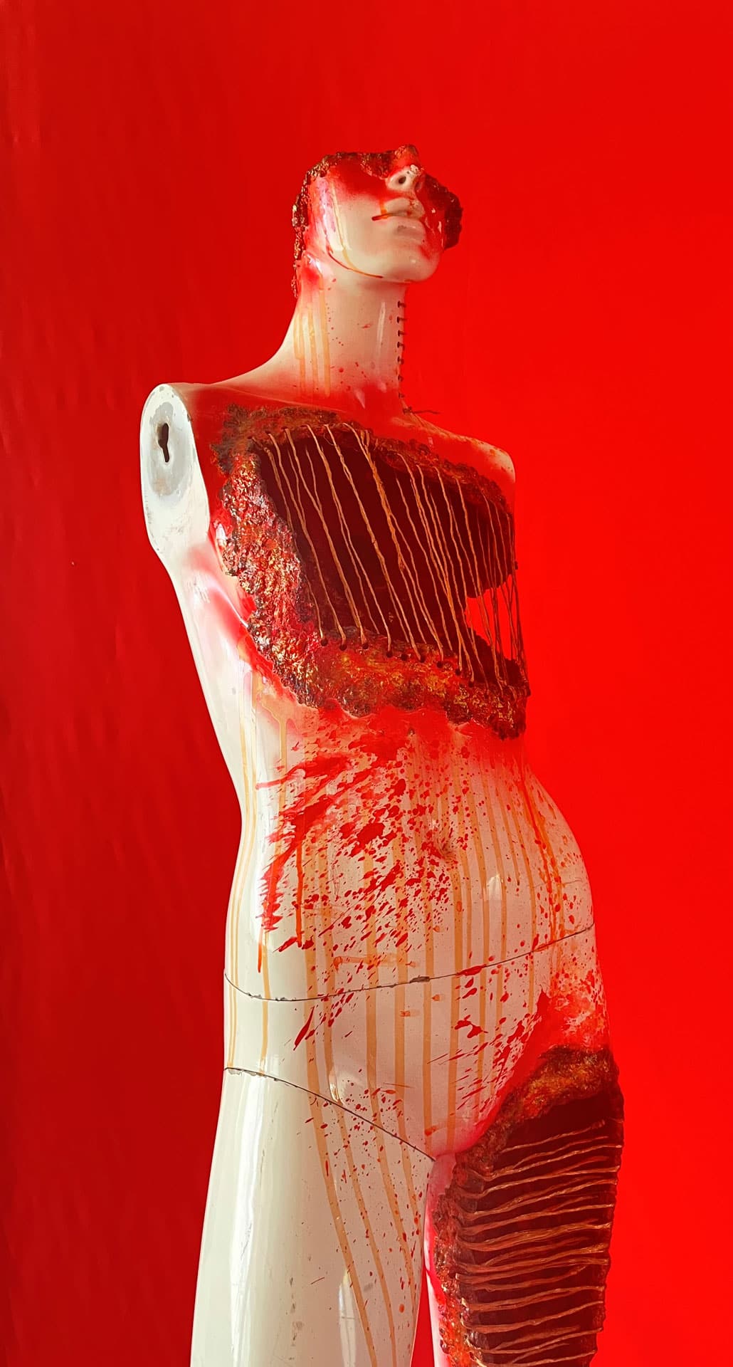 “Eternity” es una instalación multidisciplinar que reflexiona sobre la trascendencia del ser humano y su capacidad de resiliencia frente a la fractura. A través de la intervención de maniquíes con papel maché, cerámica y suturas de cobre, la obra presenta cuerpos atravesados por la herida pero sostenidos por la posibilidad de reconstrucción. Cada figura encarna el proceso de recomposición espiritual y material, afirmando que la eternidad no es permanencia estática, sino persistencia transformada.